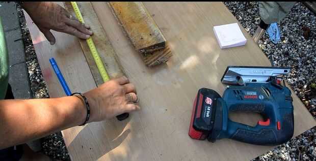 Cortar en longitudes con la sierra caladora. Cuantas tablas necesita depende de cómo gran la cerca va a ser.