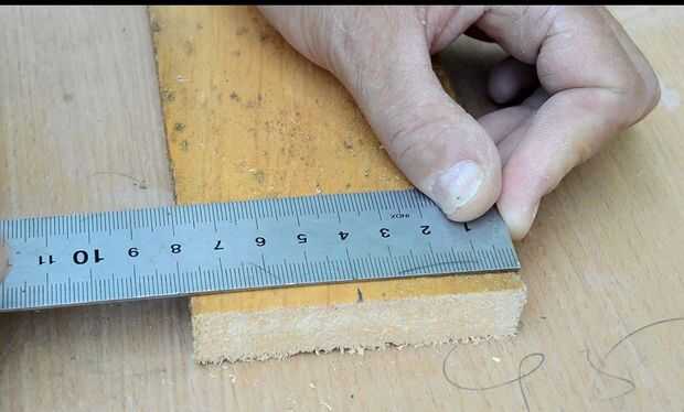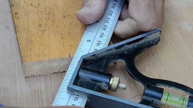 Medir el centro del tablero y use la escuadra de combinación para marcar las esquinas.