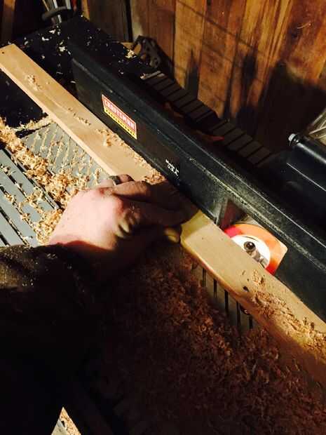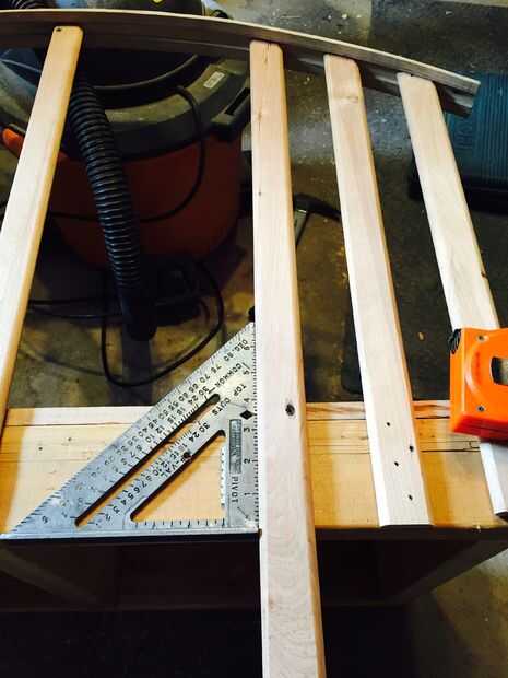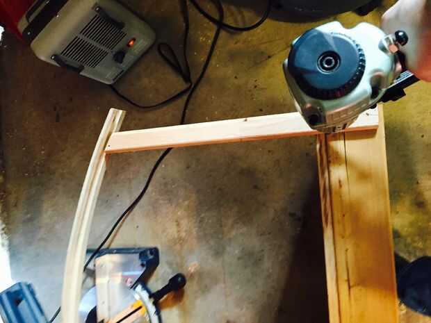 No hice la Asamblea muy científicamente. Empecé con el medio y el exterior listones y luego simplemente comentar el resto. Sé que no es la manera de hacerlo pero cuando me estaba haciendo esto es estaba como-21 grados y quería hacerlo. Usé a una clavadora de acabado para clavar los listones a la base y por la parte superior. Después hice la espalda y los lados había clavado los juntos así.
