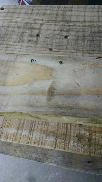 Ahora hay tornillos visibles, que no quiero. Corté una pieza de madera de la plataforma cuadrada y sólo lo suficientemente grande como para cubrir las cabezas de los tornillos expuestos. Luego lo pega sobre los tornillos.