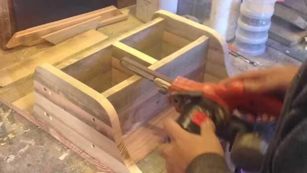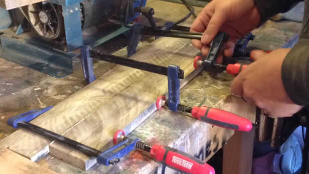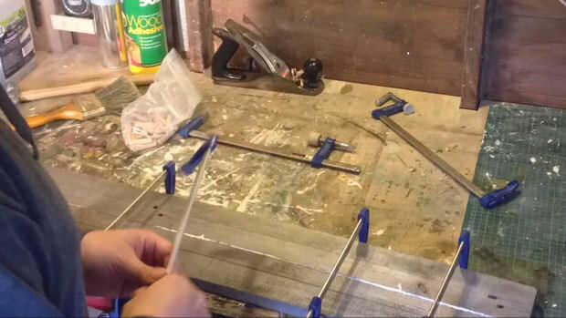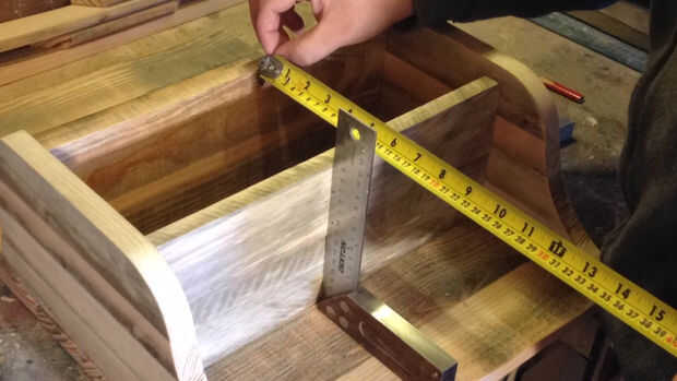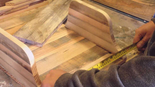 A continuación hice los estantes por encolado y fijación dos planchas (x2) juntos. Mide longitud y corte.
