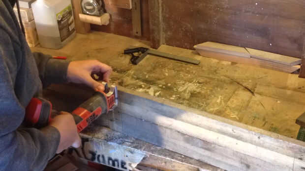 Con un corte de uno de los soportes laterales hice la pieza que va en medio de los estantes para darme dos Jessie.