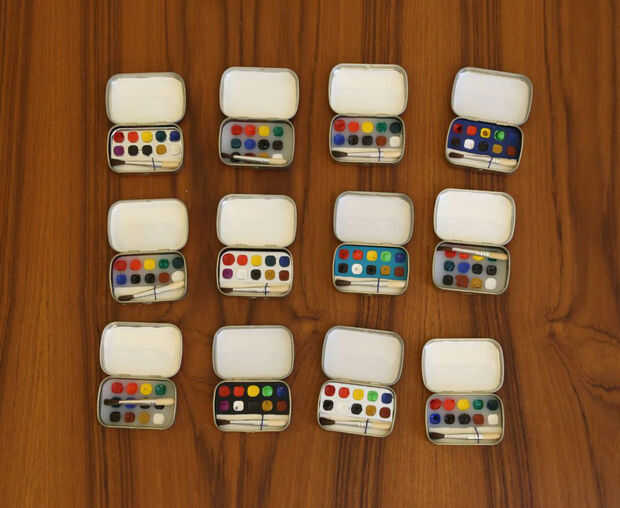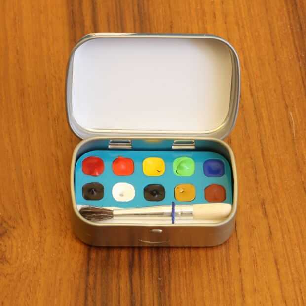 Hacer una pequeña paleta acuarela de una lata de la menta para en el ir bosquejando!