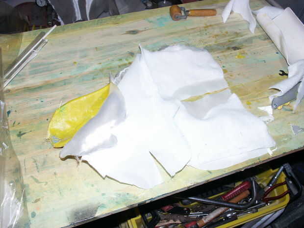 3) corte Y forma de s 9 oz de vidrio más grande que la espuma, envolverá alrededor de la espuma por alrededor de una pulgada