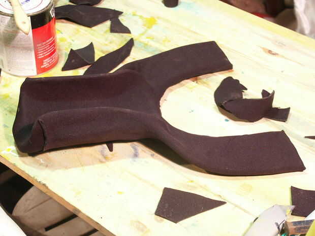 Para evitar cualquier desgaste de la piel del deportista decidí cubrir el adaptador de neopreno. Simplemente corte una forma que se envuelve alrededor del cemento de contacto y adaptador juntos. Luego pegué la costura/unir con un adhesivo de neopreno específicos, fácilmente sólo podía coser juntas