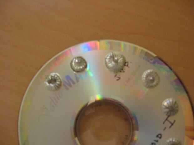 2) en CD marqué con lápiz a lo largo de su periferia donde quiero las abolladuras con cierta distancia