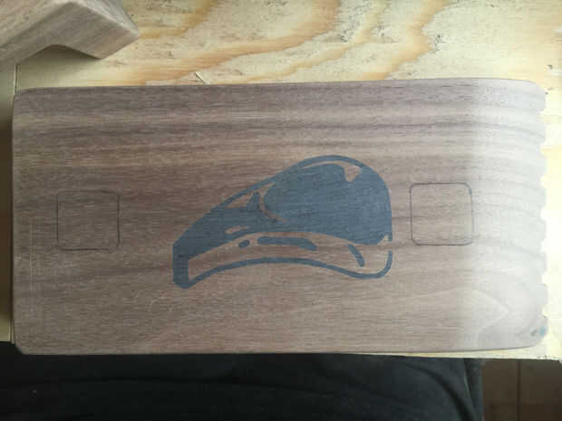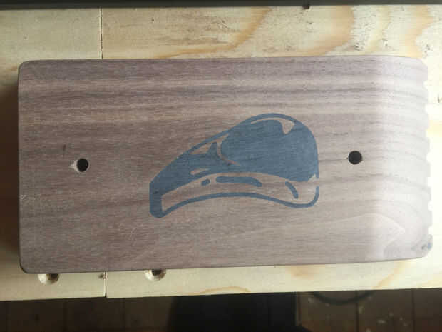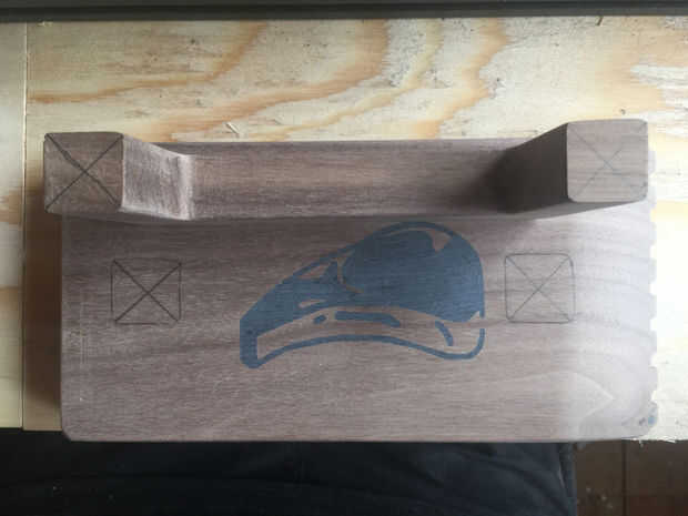 Centrada en la empuñadura en el cuerpo de la paleta y me dibujó alrededor de donde se reunió con el cuerpo. Esto me dio 2 cuadrados que pude unirme a las esquinas para encontrar el centro. También hice lo mismo en la parte inferior de la manija, me mostrará dónde perforar para los tacos.