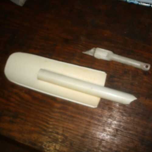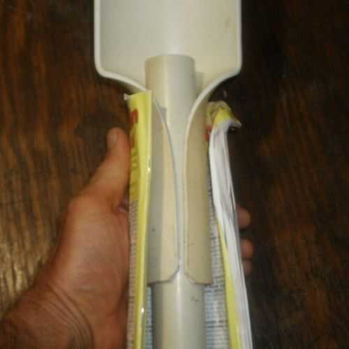 Utilicé un trozo de tubo de 1 pulgada de diámetro para formar el material ablandado alrededor. Envuelve con un catálogo de pedidos por correo para proteger las manos contra el calor y para ayudar a mantener el asa uniformemente cilíndrico.