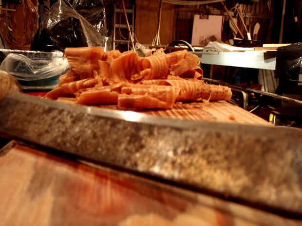Buscar partes de la tabla que podría ser una paleta como los nativos locales utilizados. Tenían una cuchilla puntiaguda y una forma de V en el eje donde se une el mango. Había un hombro liso como la hoja de la transición del eje. Necesitaba algunas explicaciones como por se haría. Fina la tabla con un cuchillo dibuja mientras es sujetada la paleta en su caballo de afeitado. Sacar los grandes golpes y líneas de centro pop en todos los bordes con una línea de tiza. Dibuja la figura que se desea tallar evitando nudos sueltos.
