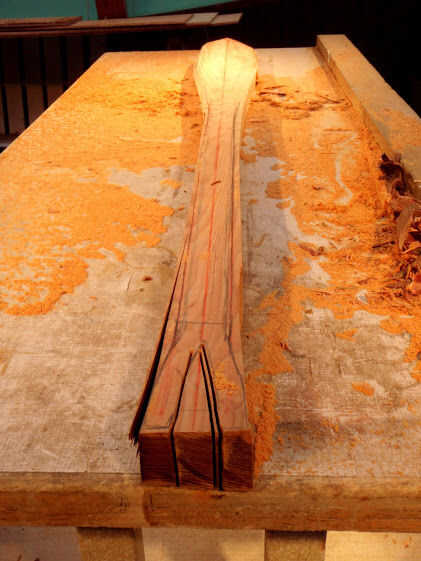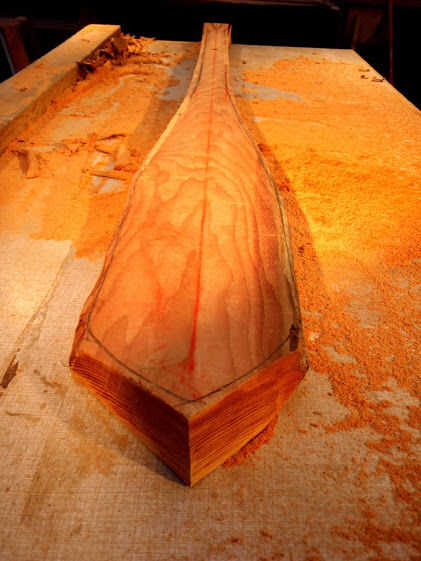 Corte la forma áspera como la V en el eje de la empuñadura. Tallar con la veta lo que no parece ser una paleta. Tienes que tener los bordes delgados y el centro más grueso para la fuerza. Como tallan gire la paleta por lo que es más fácil ir con el grano. Cuando la madera se astille, gire la herramienta o el tablón. A veces ayuda a cortar la madera. En lugar de simplemente tirar el cuchillo dibujar hacia tirar el cuchillo hacia los lados (perpendicular a la atracción) que viene hacia usted. Está bien voltear boca abajo el cuchillo de dibujo o incluso empujar con él. Talla es sobre lo que funciona. Usted puede tomar un lote de madera de rápido así como usted consigue cerca del espesor terminado S-L-O-W-D-O-W-N.