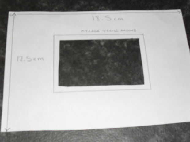 Cortar un trozo de cartón con el tamaño de la parte interior del DVD. Se refieren a la imagen de las medidas utilizadas. Cuando corte la ventana para el espejo, dibujar en el espejo y luego dibujar un marco más pequeño dentro. Este marco más pequeño es el que se cortan. El propósito de esto es que el espejo se ve clase de 'integrados' en la tapa en lugar de pegado en. Mantener este trozo de cartón a un lado.