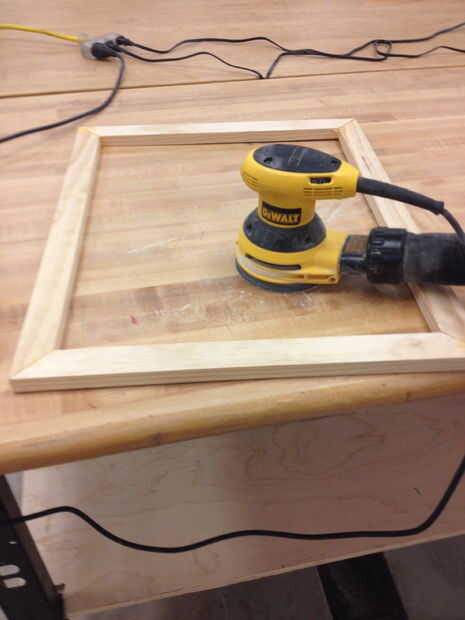 Una vez que se sujetan las esquinas utilice una lijadora de palma para hacer bastante. Esperemos que bajo las gotas de pegamento tendrá algunas articulaciones bastante agradables