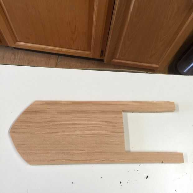 Empezar con el de 3/4 "X 6" longitud del pedazo de madera y corte 12"- este será el casco de su barco.