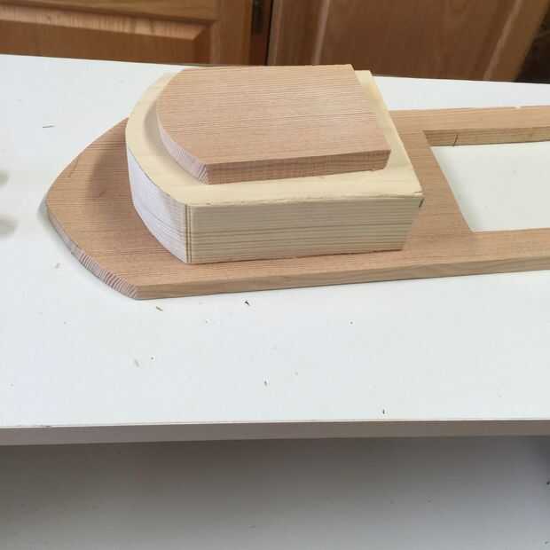 Cortar lo 2 "X 4" a 5" y, utilizando el casco como una plantilla, marque una curva para la parte delantera de la cabina y cortado en la sierra. Mismo en lo 3 "X 4" pieza que fue eliminada con el casco.