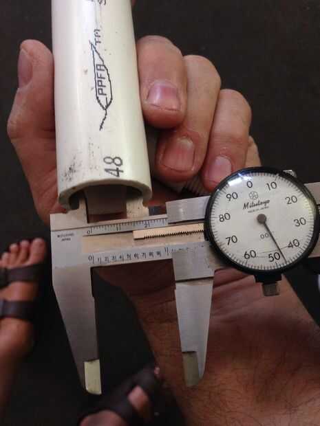 Tener acceso a un torno, decidió afeitarse abajo los extensores para caber dentro de la tubería de PVC.