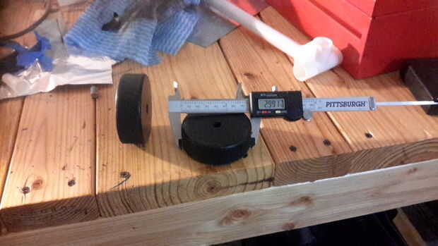 perforé el agujero a través del centro del disco usando un torno y un taladro funcionará.
