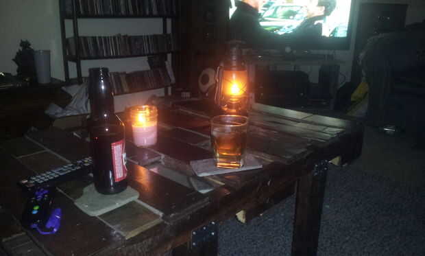 Hice una mesa de café nuevo! De una plataforma, un espejo y algunos patines que vienen en paquetes de madera para las piernas. Todo por algo como 30 dolares en asumiendo que no tienes las cosas que se me ocurrió que poner alrededor de los materiales.