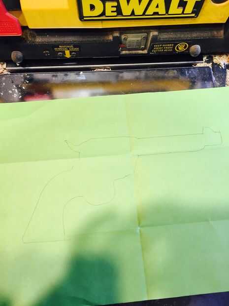 Quería el arma parece un vaquero rugar lo remonta a uno y cortar un patrón. Utilizar para trazar el patrón en la placa de la plataforma en dos puntos.