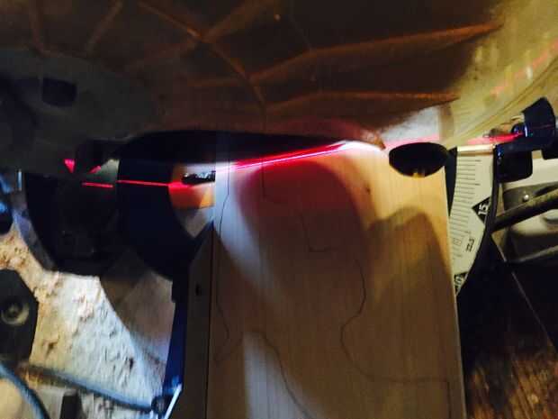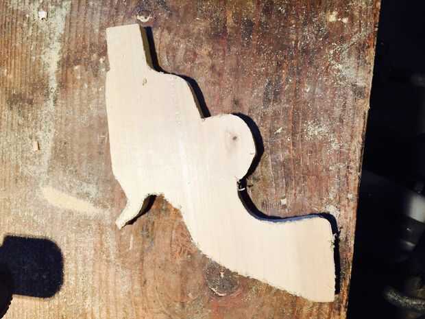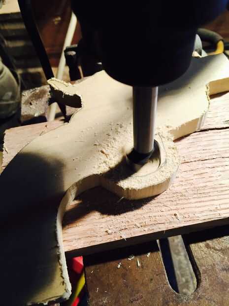 No tienes que ser perfecto cuando usted recortar estos dos porque puede formar más adelante. Necesita dos piezas cortadas el mismo patrón para que usted puede poner juntos. Después de cortar el patrón, cortar un lugar para su activación. Utilicé un poco de fostner para empezar y luego una plantilla vio hasta el final.