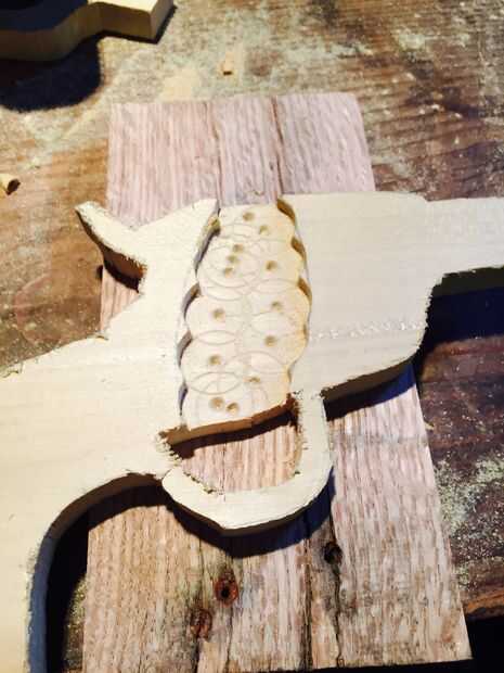 Luego use un formón para suavizar los lados y tu bien ir. Tienes que hacerlo en ambos lados del patrón. Sólo asegúrese de que usted perfore lados opuestos así que encajan entre sí. Yo no hice esto la primera vez y k tuvo que hacer otra pieza.