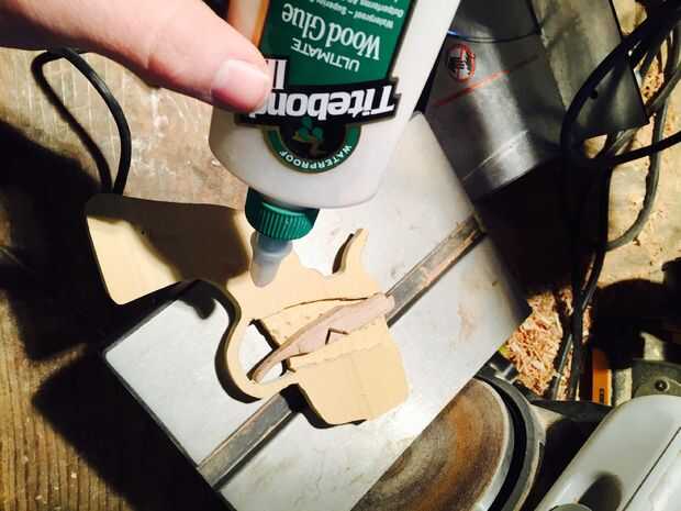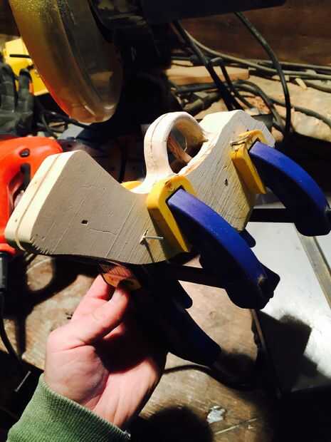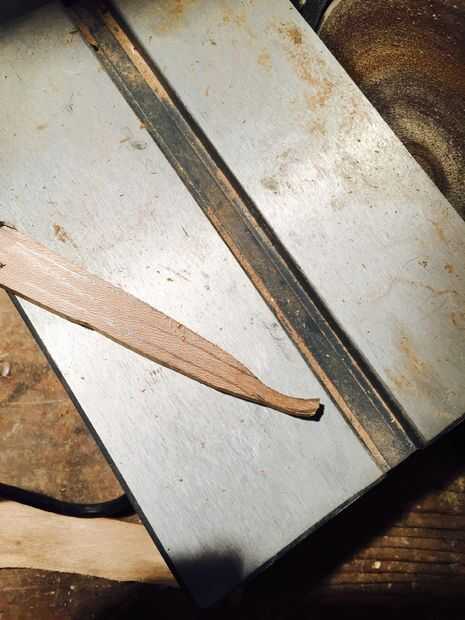 Puse en el lugar hueco hacia fuera y utilizar mi dedo para averiguar un buen pivote. Cuando pensé que tenía derecho me perforó un pequeño orificio e inserta un clavo de acabado para actuar como un pivote. He probado para asegurarse de que iba a soltar la banda elástica.