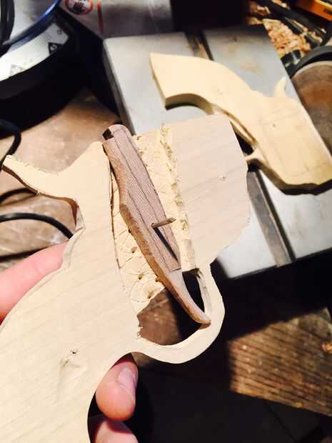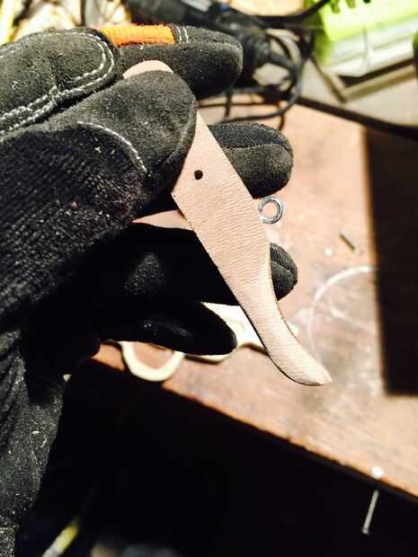 Tengo un montón de comentarios acerca de no tener ninguna resistencia en el gatillo para sujetar la banda elástica. Por suerte ahora estoy trabajando en mi segunda arma y rediseñé el gatillo. Fue un muy pequeño cambio, pero hizo una gran diferencia. Para este paso necesita un ojo muy pequeño tornillo de un pequeño manantial y otro clavo de acabado.