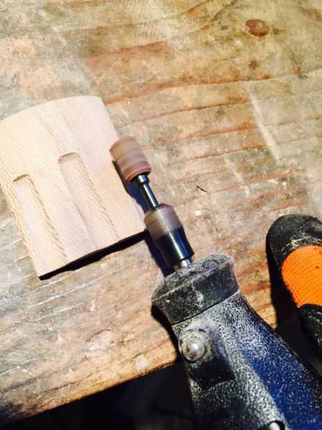 Para que la cámara corte un cuadrado pequeño que fue 3" por 2 1/2". Luego lo doblé sobre la lijadora de banco. Luego usé la dremel para hacer las arboledas en la cámara.