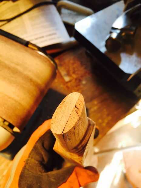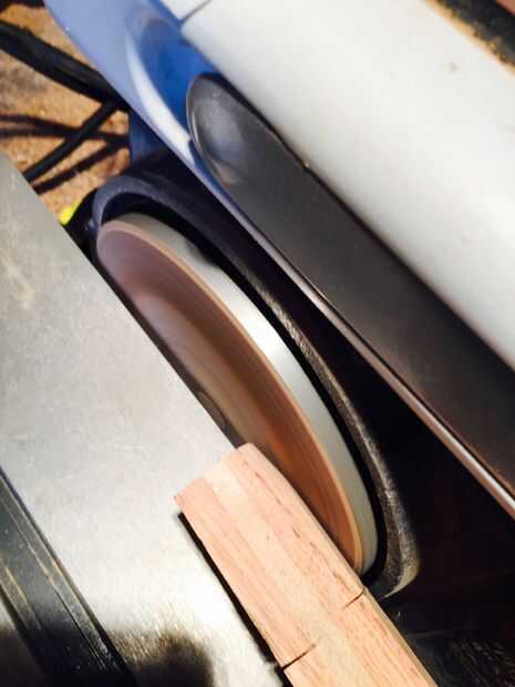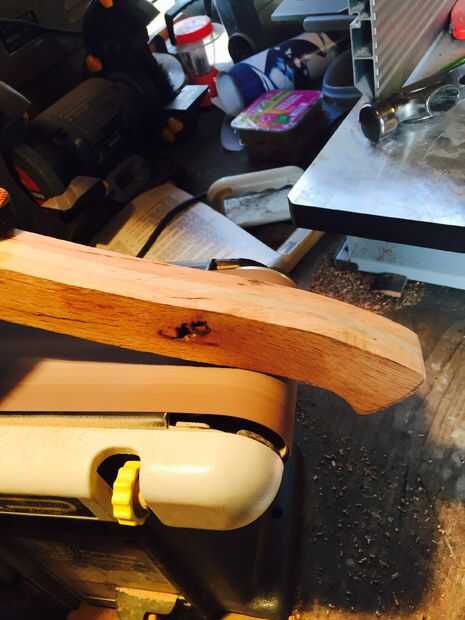 Para formar el asa he trabajado durante mucho tiempo en la lijadora de banco. Me aseguré de que todo fue al ras y luego comenzó a trabajar en el contorno. Me quité las asperezas en la lijadora de banco y luego pasó a una lijadora de Palma al acabar.