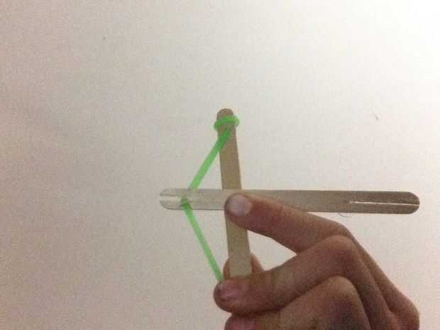 se necesita:-4 palitos-wire/clip-goma-hilo dentalPaso 1: Perforar agujeros taladré un agujero con una dremel, pero puede usar cualquier otra herramienta.Tenga cuidado de no romper el palito.Paso 2: montaje Paso 3: flechaPaso 4: Haga clic en el enlace