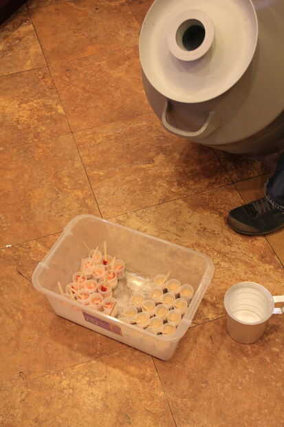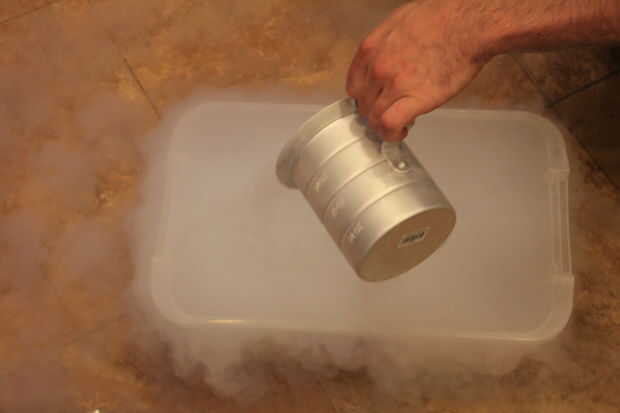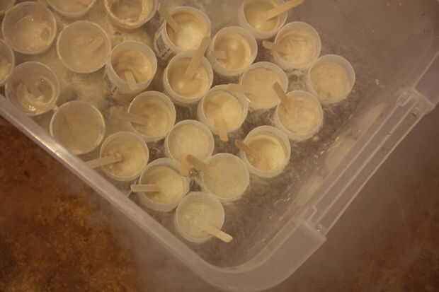 ** Pro-tip: además de simplemente sentado allí y viendo poco a poco las paletas congelar (booooooring), no dude a mover cuidadosamente el contenedor, para mantener el nitrógeno líquido en movimiento. Acelera el proceso de congelación un poco.