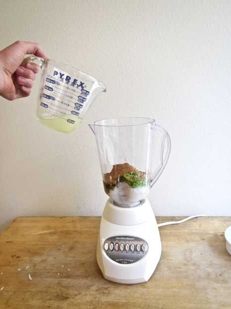 Exprimir el jugo de ambos de las cales que tenía ralladura. Entre las dos cales logré apretar alrededor de un cuarto taza de jugo de cal de ambos. Agregar ese jugo a tu licuadora.
