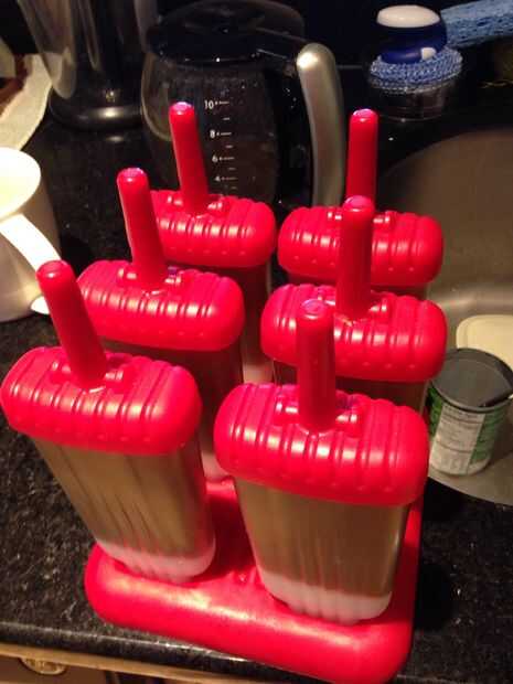 Si no tienes un molde de lujo como el mio y usas palitos real puede que desee tratar de jam ellos en su parte congelados crema tapas para que está parado para arriba.