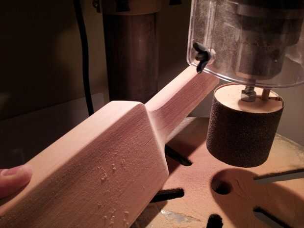 La paleta está ahora sobre todo completada pero manteniendo no es muy cómodo en ese momento. Debemos suavizar los bordes. Puede utilizar un archivo bastardo rápidamente forma un radio y utilizar papel de lija grueso. Usé tambores lijadoras a mano y papel de grano arena 60 para acelerar el proceso.