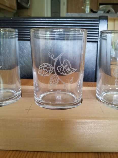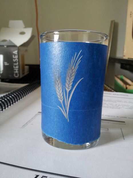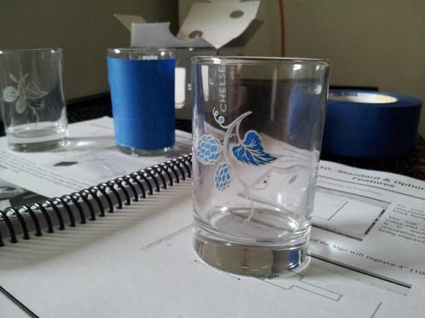 Si quiere lujo, puede grabar los vidrios usando un cortador láser. Utilicé un cortador láser Epilog equipado con un concierto rotatorio. Los vidrios donde pegadas con cinta de pintor para limitar el vidrio astillado.