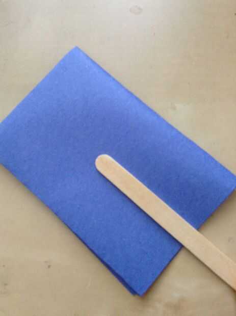 Doblar el pedazo de papel de construcción varias veces y dibujar y cortar una forma de paletas. Asegúrese de que puede caber los dos palitos dentro. Pegan los bordes del papel. Deja una abertura pequeña, apretada en la parte inferior de los palos.