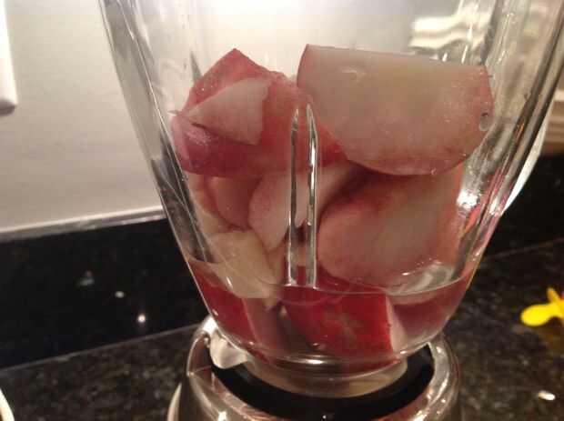 1. Coloque el jengibre y el melocotón en la licuadora con una pequeña cantidad de agua. Mezcla hasta que quede suave.