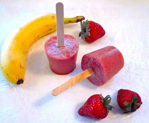 Estas paletas de daiquiri de fresa plátano son un verdadero placer en un caliente día de verano. Usted querrá comer para arriba rápidamente porque derrite un poco más rápido que el regular paletas, pero ten cuidado, que estas paletas contienen Ron! La mezcla de plátano y fresas le da estas paletas borracho más de una textura suave y cremosa que algunas paletas de alcohol que suelen ser heladas.