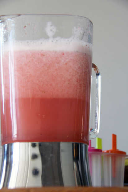 Nota: Si no tienes licuadora, no se preocupe! Tú siempre cortar las fresas en trozos más pequeños y luego el puré con un tenedor antes de disolver el azúcar y jugo de limón y agua. También pueden separarse como en la foto, pero no se preocupe, todavía sabe maravilloso!