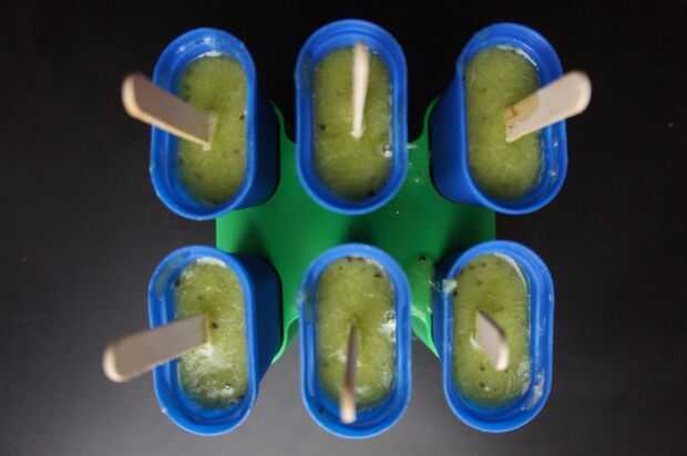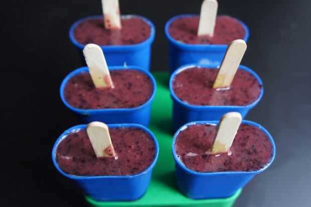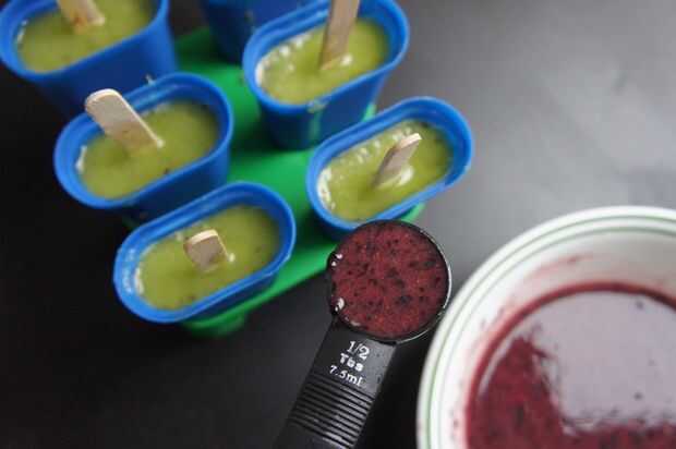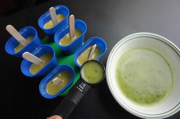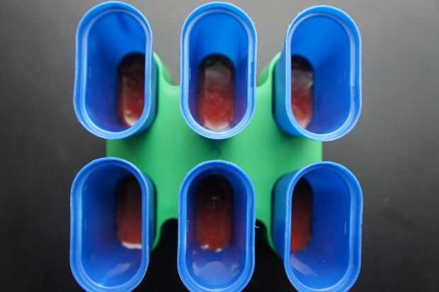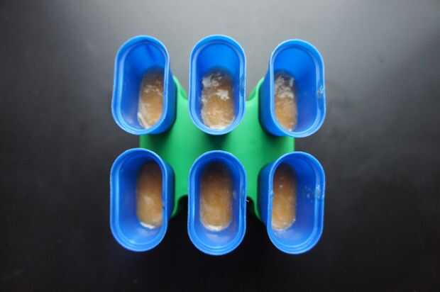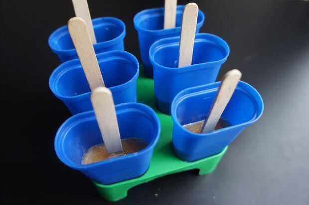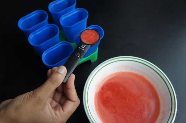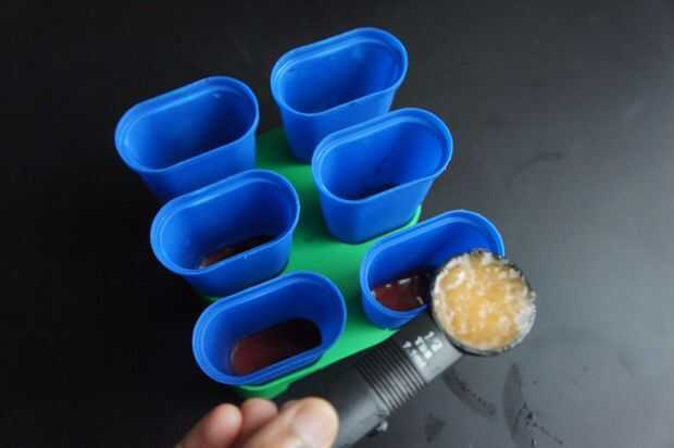 1) medir y verter la mezcla de fruta en los moldes del pop.