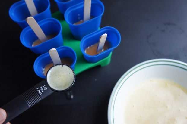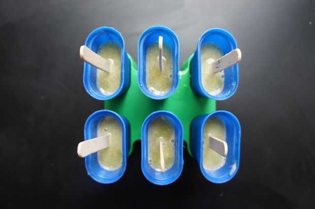 4) después de una hora, añadir la capa de melón e insertar el palito y congelar durante una hora.