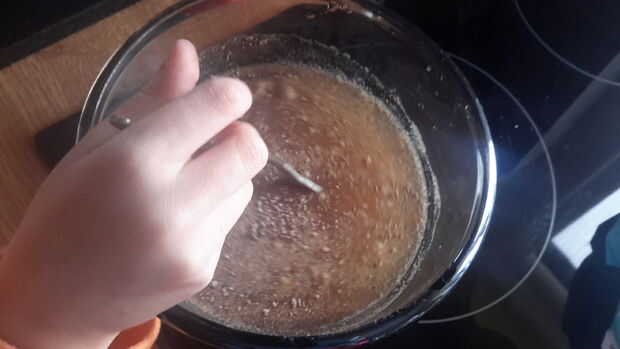 Añadir poco de agua tibia y revolver hasta que quede lisa