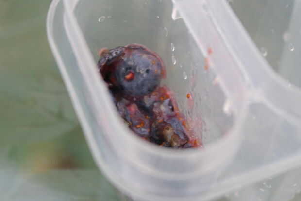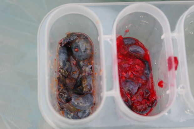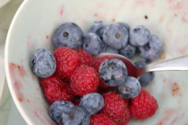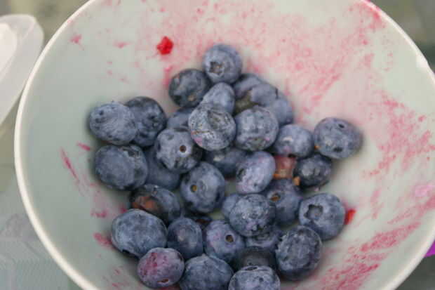 Lo primero que encontré fueron los arándanos. Pensando que, como las frambuesas, debo romperlas para arriba, rompieron los arándanos a un lío con sabor a fruta.