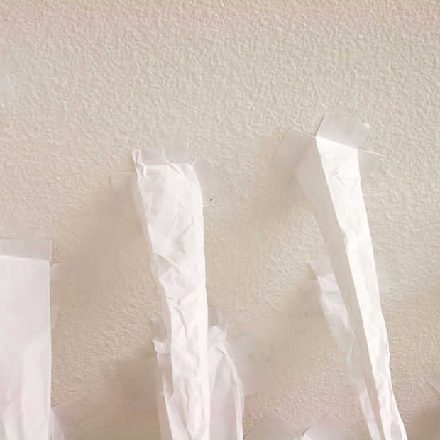 Nota: Al instalar estos, de mayor a menor y rellene según sea necesario. Mi más grande icicle es 4 hojas de papel tamaño oficio empalmados juntos para una longitud final de 4' (aproximadamente 1¼ m).