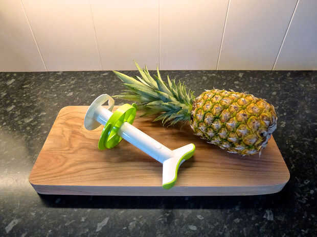 Yo soy un gran fan de la herramienta de máquina de cortar de la piña (fotografiado). Ciertamente no impresionar a cualquier chef, pero si eres un principiante como yo, realmente hace un gran trabajo sacando hacia fuera las entrañas de una piña.