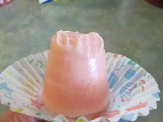 Tire suavemente de la palanca quitando la sandía paleta de la taza. Estas tazas son reutilizables para no desecharlos. Deja el papel de Magdalena en el palo, se vienen en muy útil recoger cualquier goteo. Yum! ¡ Disfrute!