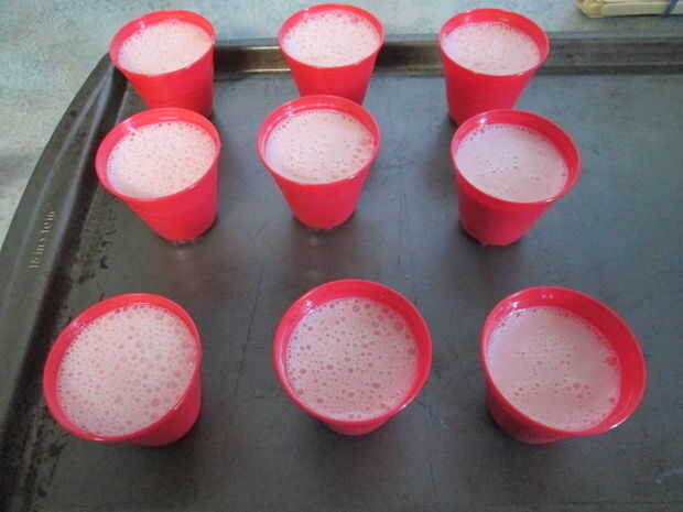 Vierta el líquido de sandía en las tazas que ya establecido.