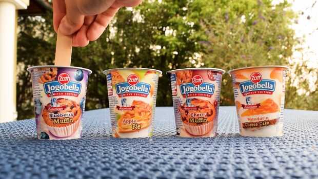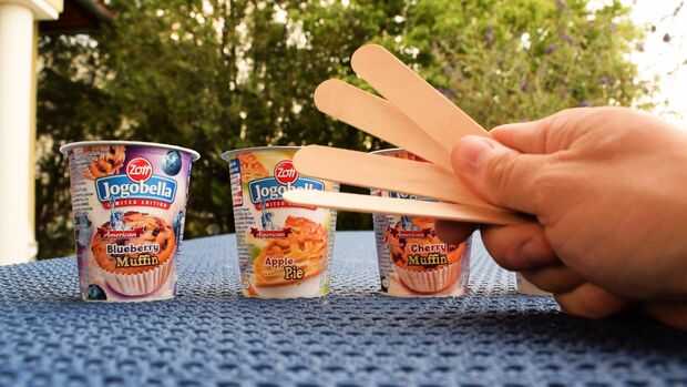 Tomar algunos palitos y empujarlos en los yogures de la parte superior.