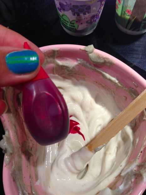 Paso 3: Iniciar la 2da capa de la mezcla y agregar en la taza. He añadido el colorante de alimentos para que sea rosa.