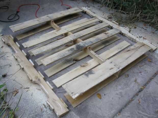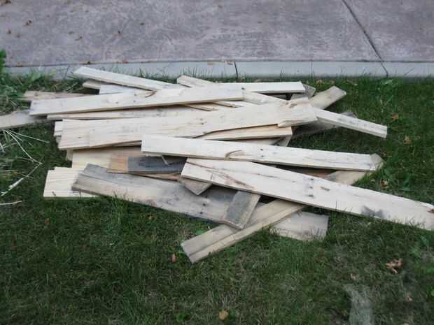 Para eliminar el trato con la mayoría de los molestos clavos, tomé una sierra circular y corte a ambos lados está cerca del borde para obtener el máximo provecho de los listones. Dependiendo de la condición de las lamas puede utilizar fácilmente una barra del cuervo para levantar el listón o torcer y doblar los listones de frustración hasta que vienen sueltos.