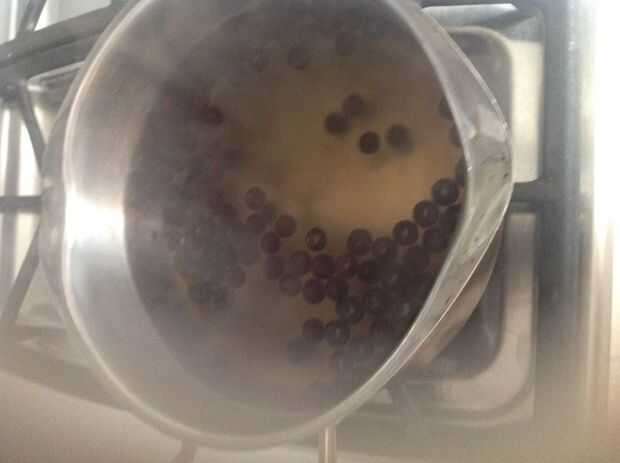 1. cocinar las perlas de tapioca siguiendo las instrucciones en el paquete. Mis perlas tomaron unos cinco minutos para cocinar después de que añadí al agua hirviendo.